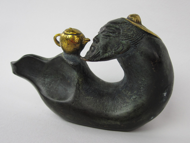 One thing that I find interesting about nearly all of the portrayals I’ve seen of Lu Yu, the 8th century Chinese writer of the Cha Jing (茶經, “Classic of Tea”), is that they are so consistent in style. He is almost always seated and shown with a teapot to one side of him on an integral, raised platform part of the structure he is seated on. I have seen some “tea mascots” in the form of Lu Yu in which the teapot is absent because the sculptural platform is intended as a resting place for an actual functional teapot during the Gongfu Cha session. While in use, the effect is essentially the same, despite the difference in scale from the typical scholar/teapot ratio. Portrayals of Lu Yu also invariably give him the traditional Tang Dynasty hairstyle with topknot, long hair and long beard.