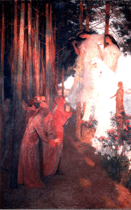 Le Apparition de Clemence Isaure aux Troubadours by Henri Martin. This artwork may be protected by copyright. It is posted on the site in accordance with fair use principles.