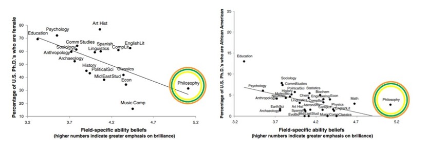 Cultural beliefs and stereotypes that associate men but not women with “raw intellectual talent” can help explain the differing gender gaps across various academic disciplines, according to a new study by Sarah-Jane Leslie (Princeton), Andrei Cimpian (Illinois, Urbana-Champaign), Meredith Meyer (Ottterbein), and Edward Freeland (Princeton) published today in Science. A similar account appears to explain racial disparities in academia, as well. In short, “the more a field valued giftedness, the f