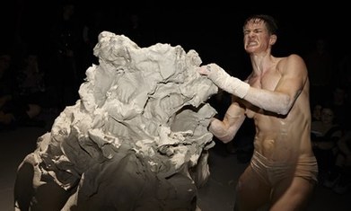 Audiences may see Cassils’ muscle-heavy body as a way of challenging such violence, confronting bullying with strength. Through weight training, Muay Thai martial arts, traditional boxing, diet manipulation and supplements, the artist pushes the definition of a “biologically female body” to its visual extreme without taking testosterone or having surgery. Cassils is almost unfeasibly strong, almost entirely naturally…